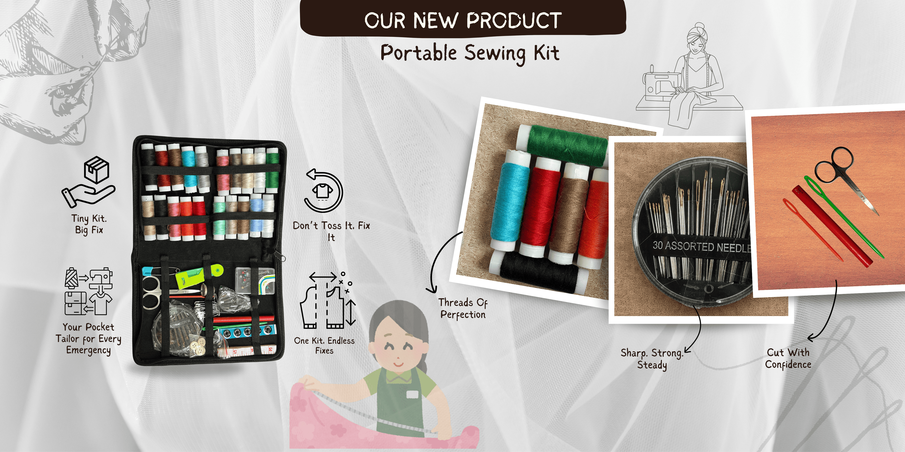 Be Your Own Tailor Anywhere! A compact sewing kit with scissors, threads, needles, and all essentials for quick fixes, DIY crafts, and travel emergencies. Stylish, portable, and always ready when you need it most